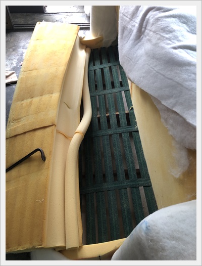 ●拆除舊皮革,進口沙發使用的高密度泡棉彈性依舊很Q彈